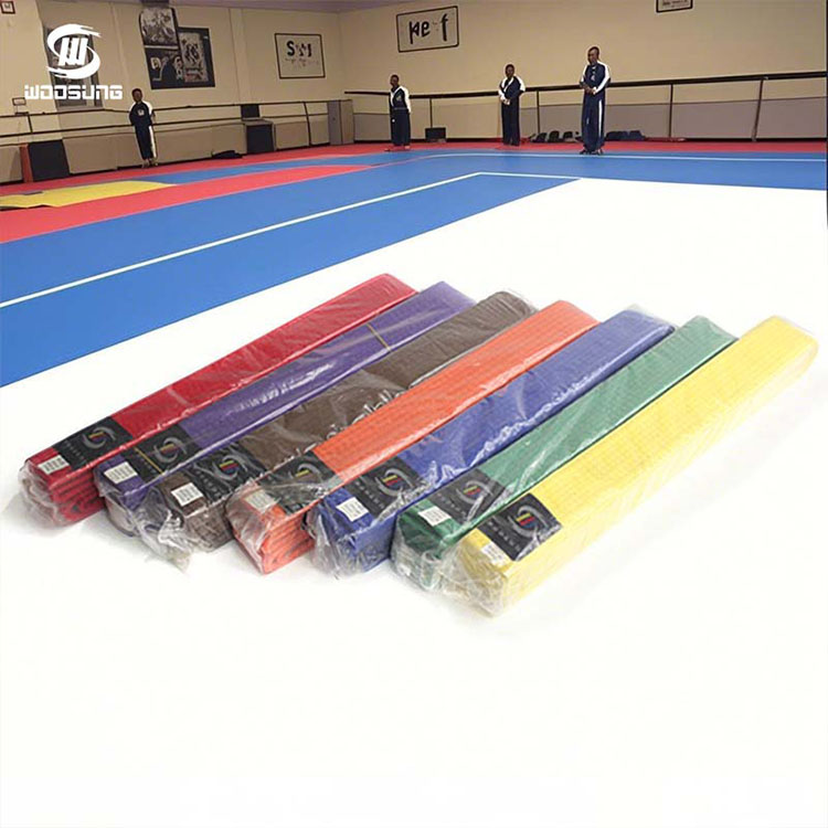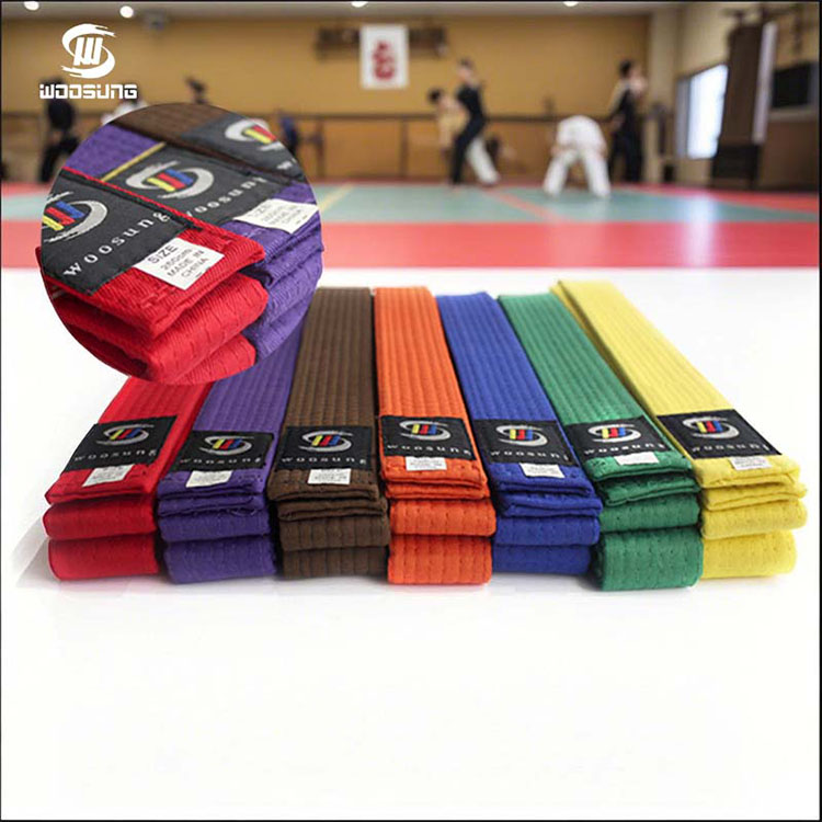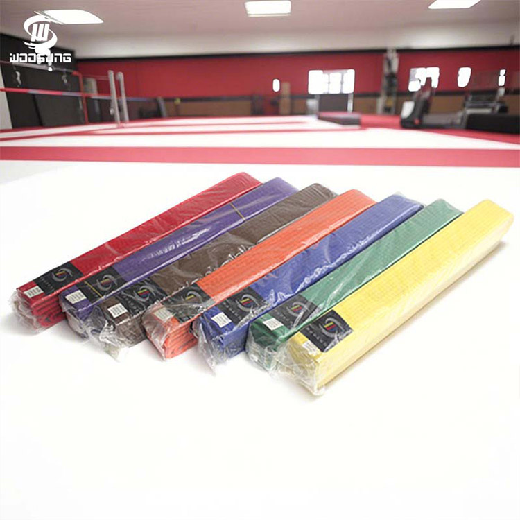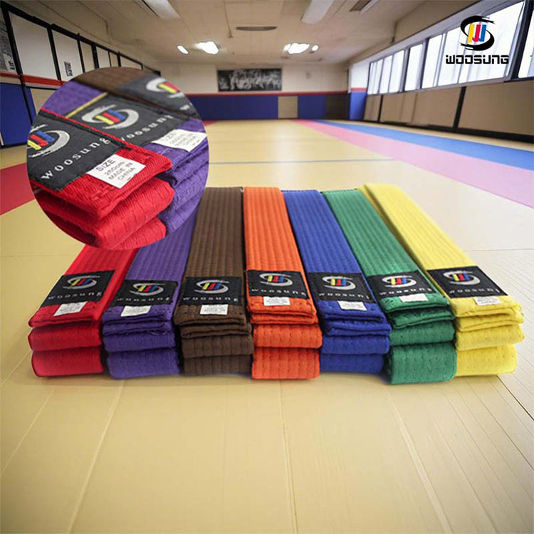 חגורות קראטה WOOSUNG, כסמל לזהות וסימן התקדמות עבור מתרגלי אומנויות לחימה, הן מוצר הליבה שלנו, הבנויות על למעלה מ-20 שנות ניסיון בייצור ציוד לאומנויות לחימה. אנו משתמשים בחומרים איכותיים כגון תערובות כותנה טהורה ופוליאסטר בשילוב עם אריגה מדויקת ותהליכי צביעה ידידותיים לסביבה, ליצירת חגורות ברמה מקצועית עם עמידות מצוינת ועמידות בפני שחיקה, המכסות את כל הדרגות מחגורה לבנה ועד חגורה שחורה.
