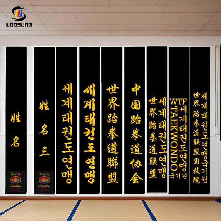 אנו משתמשים בחומרי טקסטיל עמידים בפני שחיקה, בעלי חוזק גבוה, שנוצרו בתהליך אריגה יציב, המבטיחים שחגורת הלוגו של ה-WOOSUNG Black Belt Karate עמידה בפני התקלפות ועיוותים במהלך אימון ארוך טווח.