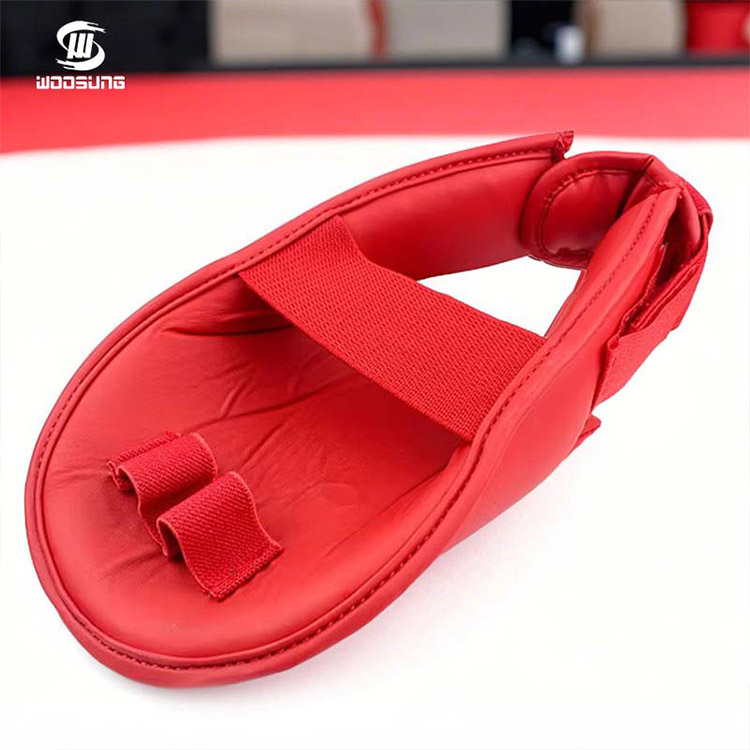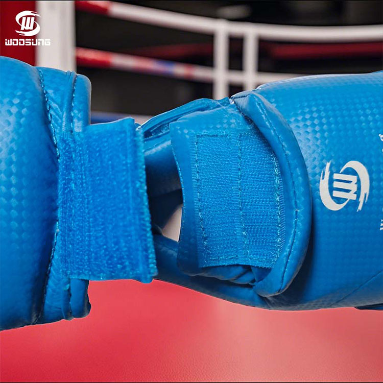 המראה כולל את הצבעים האדומים והכחולים הקלאסיים של תחרות קראטה, המודגשים ברקמה לבנה "Wu" (אומנויות לחימה), המציגות את זהותו המקצועית של הספורטאי. זה לא רק שין גארד קראטה עד ברך, אלא הרחבה של הביטחון העצמי והאישיות שלך על מזרן התחרות.